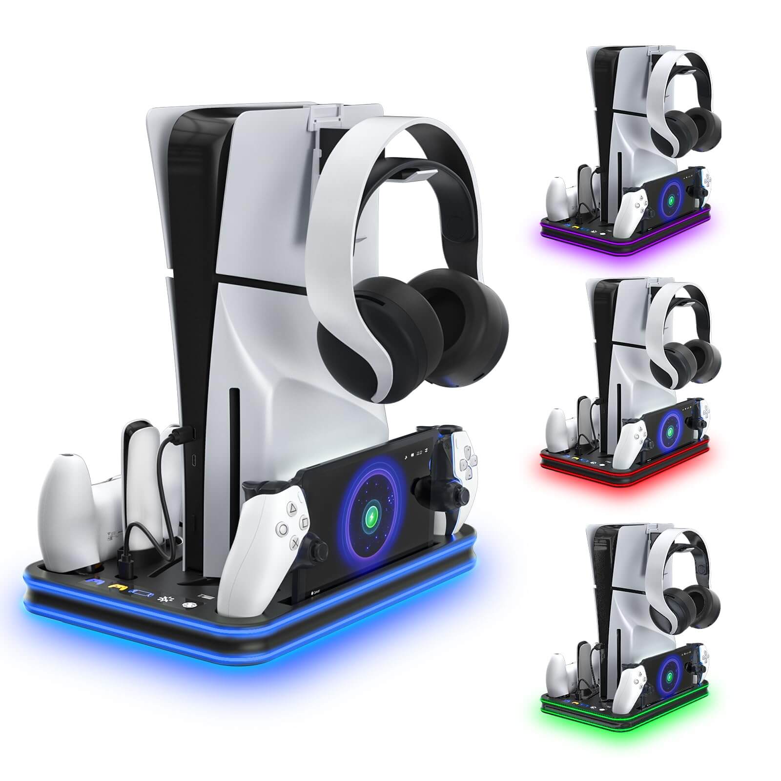 PlayStation Portal Charger, PS5 Stand and Cooling Station with RGB LED Controller Charging Dock Accessories, PS5 Edge Controller and PS Portal Charger, Headset and Remote Holders