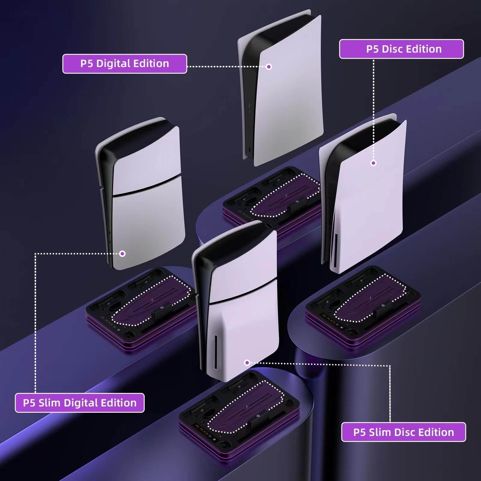 PS PORTAL MULTIFUNCTIONAL CHARGING AND COLLING STATION - The new upgrade multifunctional PS5 cooling and charger station can charge both the playstation portal as well as the ps5 controller (edge controller too). This cooling stand for ps5 is suitable for both ps5 console digital edition, ps5 console disc version and 2023 PS5 slim console (CFI-2000A01 & CFI-2000B01) . ❗ ❗ ❗NOTE: PLEASE TAKE OFF the cover case while charging with the charger station.